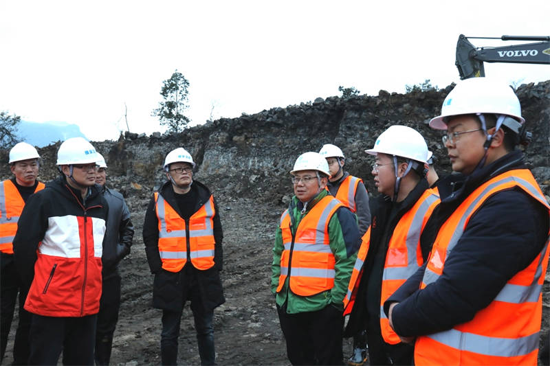 隨后,檢查組乘車前往天全魚泉鄉(xiāng)丹石礦山首采平臺。丹石公司負(fù)責(zé)人匯報,礦山存儲量可供開采十余年,目前已經(jīng)初步解決棄土矛盾,基本可以實現(xiàn)量產(chǎn)。聽完現(xiàn)場匯報,大家切實感受到礦山開采工作的艱辛,又為集團(tuán)豐富的“家底”而信心倍增。