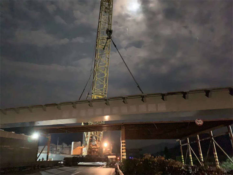 雅西跨線(xiàn)橋混凝土預(yù)制箱梁共計(jì)4片,本次架設(shè)的箱梁重140噸、長(zhǎng)55余米,體積大、自身重、運(yùn)輸困難,且投入的大型機(jī)械設(shè)備較多,施工組織難度大。為順利完成架設(shè)任務(wù),市交通局多次組織召開(kāi)專(zhuān)題會(huì)議,提前謀劃、細(xì)致安排、優(yōu)化組織,制定了施工專(zhuān)項(xiàng)方案和應(yīng)急措施。