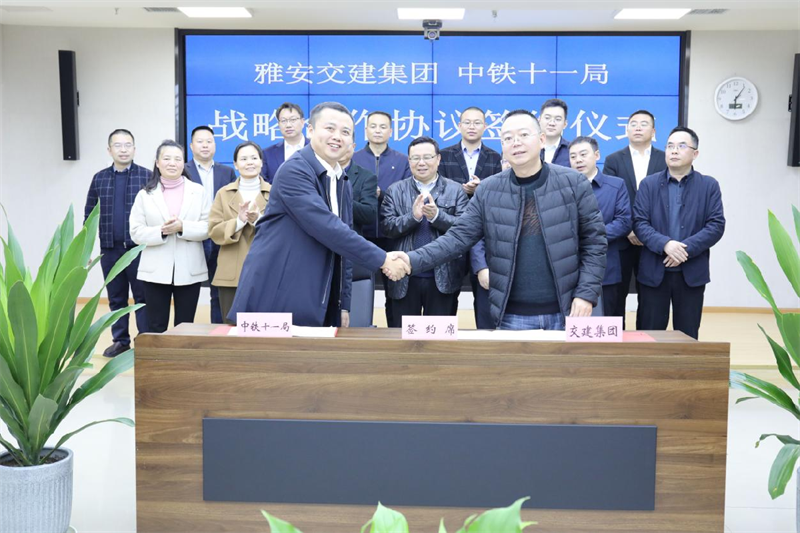11月2日,雅安交建集團與中鐵十一局集團有限公司簽署戰(zhàn)略合作協(xié)議。集團黨委書記、董事長漆家華,中鐵十一局集團公司四川區(qū)域總經(jīng)理呂 涵參加并見證簽約儀式,集團黨委副書記、總經(jīng)理羅倫全與中鐵十一局集團四川區(qū)域副總經(jīng)理吳江偉代表雙方簽約。集團領(lǐng)導(dǎo)張萬清、張勝利、丁春、陸鷗、程學(xué)強,中鐵十一局四川區(qū)域副總經(jīng)理田景發(fā)以及四公司、五公司相關(guān)負責(zé)人見證簽約和座談交流。