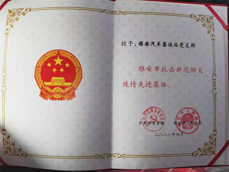 今年4月,蜀通公司雅安汽車客運站黨支部被市委、市政府評為“雅安市抗擊新冠肺炎疫情先進(jìn)集體”,蜀通公司名山車站曹流滔同志被表彰為“雅安市抗擊新冠肺炎疫情先進(jìn)個人”。
