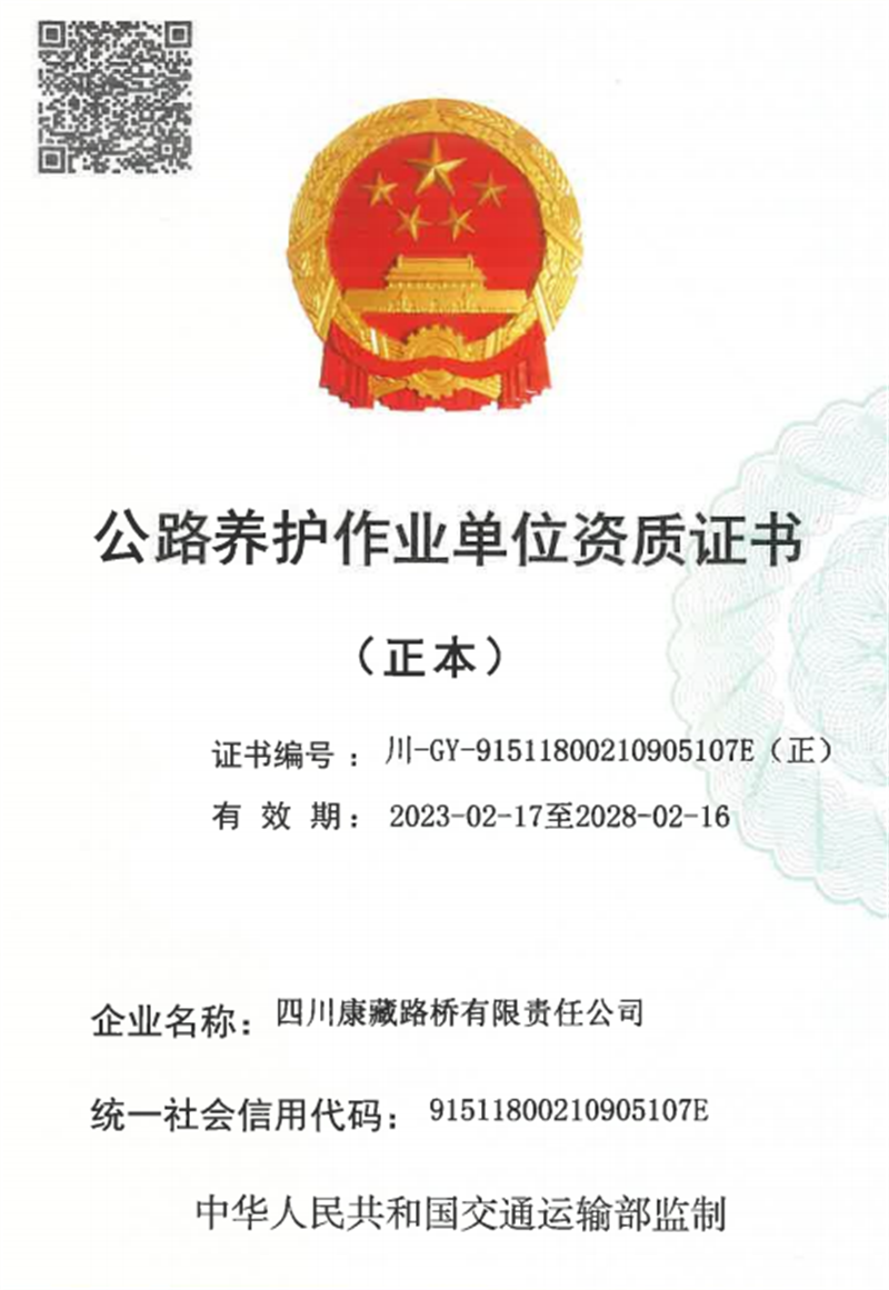 日前,四川康藏路橋有限責(zé)任公司成功通過四川省交通運輸廳資質(zhì)申報評審,順利取得路基路面養(yǎng)護乙級資質(zhì)證書,成為目前雅安唯一獲得此養(yǎng)護資質(zhì)的作業(yè)單位。