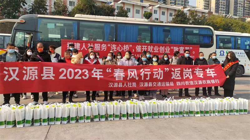 蜀通公司按照“政府牽頭、部門協(xié)同,統(tǒng)一組織、供需對接,全程管控、安全溫馨”要求,提前謀劃制定“春風行動”運行方案,提供“點對點、一站式”專班運輸服務,加強駕駛員安全教育、服務質量培訓及車輛衛(wèi)星定位視頻監(jiān)控,確保安全有序地將農民工輸送至各個崗位。同時,在各車站售票窗口、行包安檢、檢票等區(qū)域設置“春風行動農民工綠色通道”,方便農民工前往車站購票、乘車;推出石棉至成都、雅安各1車次的“春風行動1元購票返崗福利”,鼓勵支持外出務工人員安全有序返崗;隨車配備方便食物、飲用水、紙巾等必要食品,提供暖心服務。