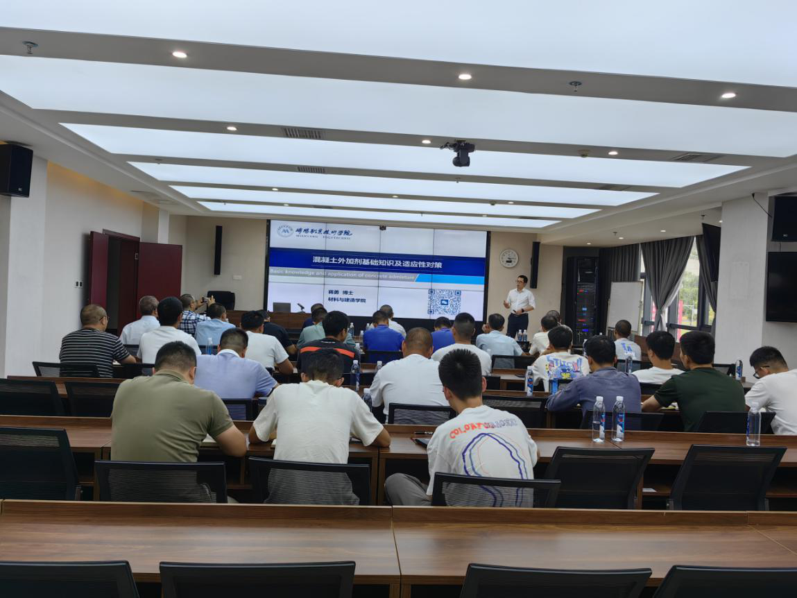 培訓(xùn)邀請(qǐng)綿陽職業(yè)技術(shù)學(xué)院材料與建造學(xué)院院長(zhǎng)賈陸軍、蔣勇兩位博士授課,重點(diǎn)圍繞配合比設(shè)計(jì)中需注意的事項(xiàng)展開,詳細(xì)講解配合比設(shè)計(jì)要點(diǎn),分析原材料選擇及礦粉、粉煤灰摻合料摻配比例的重要性,總結(jié)交流機(jī)制砂在混凝土中的應(yīng)用技術(shù),講解混凝土外加劑基礎(chǔ)知識(shí)、分析目前外加劑在使用過程中適應(yīng)性問題和原因,通過真實(shí)案例分析混凝土質(zhì)量問題的原因及管控要點(diǎn)等。