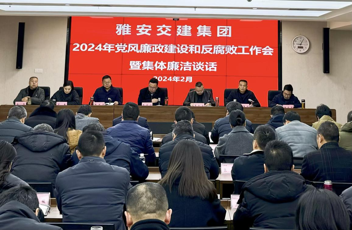 為深入學習貫徹習近平總書記關于黨的自我革命的重要思想,認真貫徹落實二十屆中央紀委三次全會、省紀委十二屆三次全會和市紀委五屆四次全會精神,2024年2月22日,雅安交建集團召開2024年黨風廉政建設和反腐敗工作會暨集體廉潔談話,總結回顧去年工作,分析當前面臨的形勢和問題,安排部署2024年黨風廉政建設和反腐敗工作,并開展集體廉潔談話。