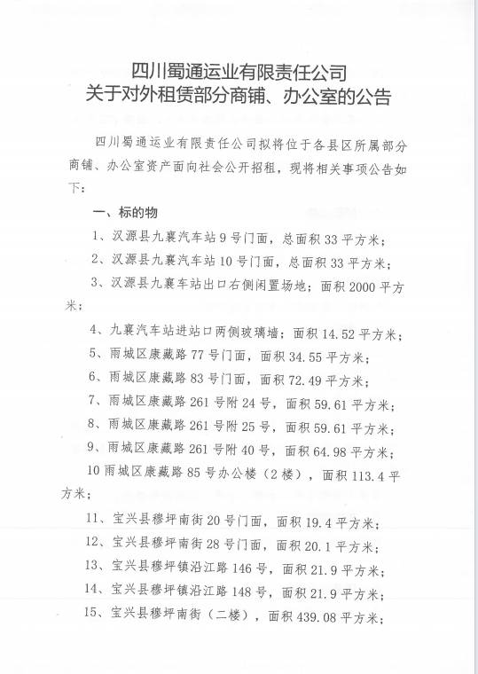 ËÄ´¨Êñͨß\˜I(y¨¨)ÓÐÏÞØŸÈι«Ë¾êPÓÚŒ¦Íâ×âÙU²¿·ÖéTÃæ¡¢Þk¹«ÊÒÙY®aµÄ¹«¸æ