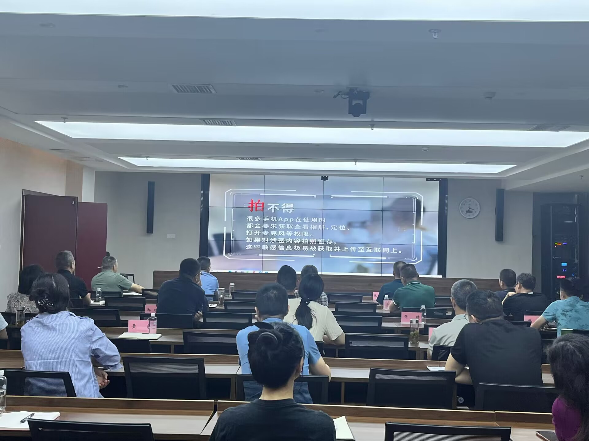 一是普及知識,營造氛圍。全體參與人員對新修訂頒布《中華人民共和國保守國家秘密法》的重要意義、精神實質(zhì)和主要內(nèi)容進行了認真學(xué)習(xí),深刻領(lǐng)會保守國家秘密的現(xiàn)實意義,營造了學(xué)法、守紀、保密的良好氛圍;二是以案釋法,樹立意識。集中觀看了《把好手機“保密關(guān)”》等保密宣傳教育片,用鮮活的案例,告誡大家要筑牢思想防線,樹立“國家秘密無小事”的保密意識,提高保密工作的責(zé)任感和使命感;三是交流互動,凝聚共識。在交流發(fā)言中大家紛紛表示,在今后的工作中要嚴守保密防線,強化保密意識,及時把學(xué)習(xí)成果轉(zhuǎn)化為抓牢保密工作的能力,嚴格遵守保密條例,堅決與危害國家安全的行為作斗爭,杜絕泄密現(xiàn)象發(fā)生。