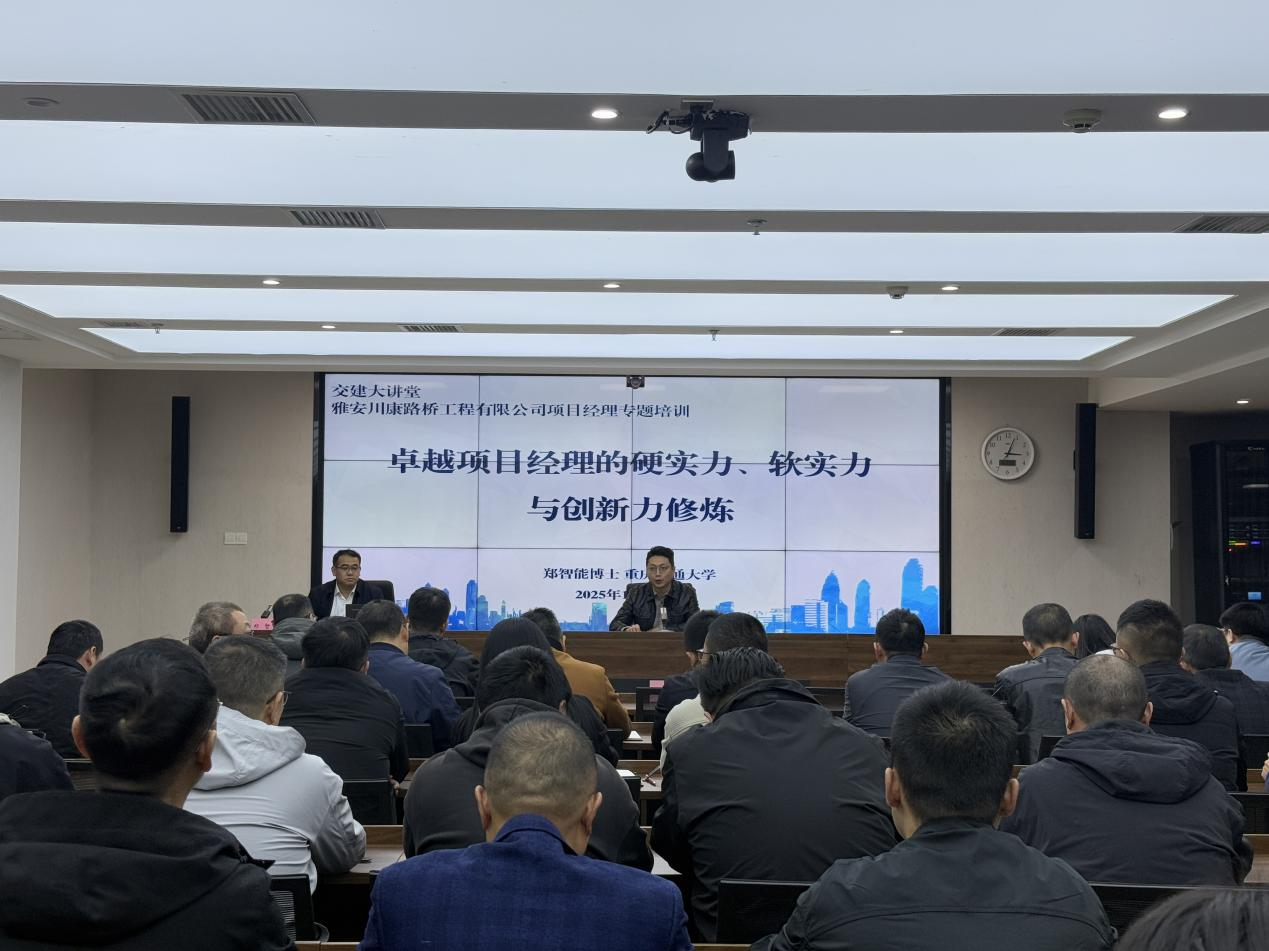 本次培訓特邀重慶交大工學博士、副教授、碩士生導師鄭智能老師,以“優(yōu)秀項目經理的硬實力、軟實力與創(chuàng)新力修煉”為主題,聚焦行業(yè)前沿動態(tài)與實戰(zhàn)應用,旨在幫助項目經理拓寬管理視野、夯實核心技能,為公司轉型升級和經營目標的順利實現(xiàn)提供有力的人才支撐。