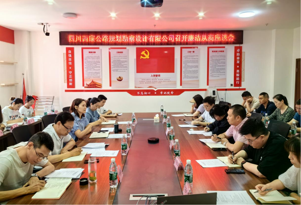 為弘揚清風正氣,共建“親清”統(tǒng)一的企商關(guān)系,共筑廉潔自律反腐防線,營造更加優(yōu)良的發(fā)展環(huán)境。5月24日,雅安交建集團西康設計公司召開廉潔從商座談會,22家合作商、供應商應邀參加,集團黨委委員、副總經(jīng)理丁春出席會議并作重要講話,公司黨支部書記、執(zhí)行董事何銘新主持會議,公司全體中層干部參加會議。