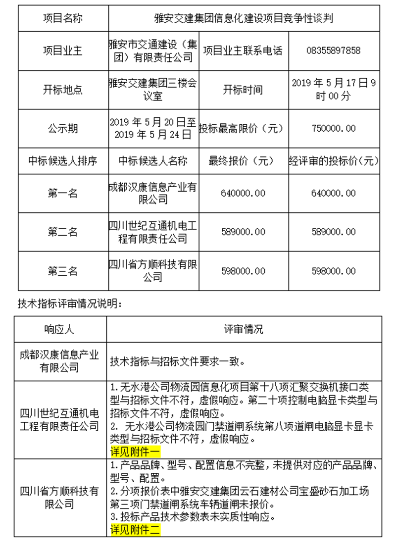 雅安交建集團信息化建設(shè)項目競爭性談判評標(biāo)結(jié)果公示