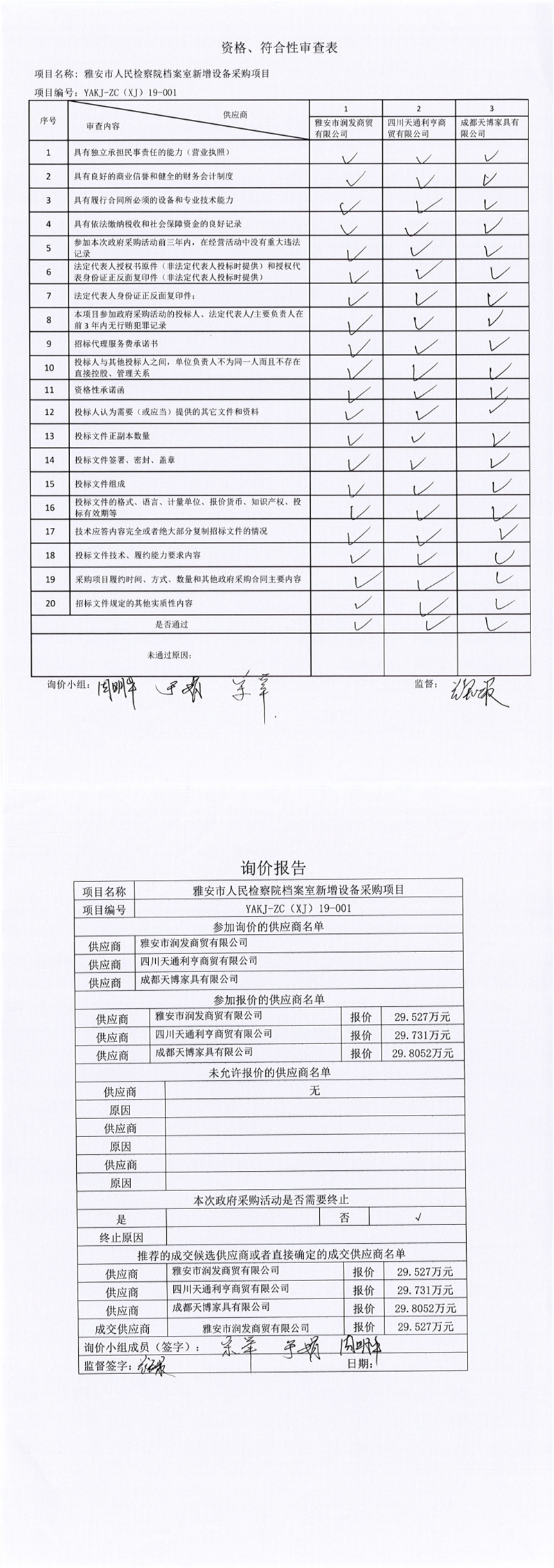 雅安市人民檢察院檔案室新增設(shè)備采購項目結(jié)果公示