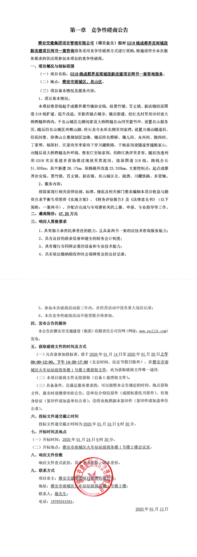 雅安交建集團(tuán)項(xiàng)目管理有限公司G318線成都界至雨城段新改建項(xiàng)目勘測定界服務(wù)競爭性磋商公告