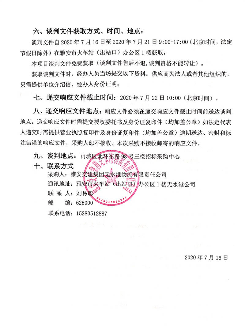 雅安交建集團(tuán)無水港物流有限責(zé)任公司雅安市鳳鳴綜合物流園項(xiàng)目戶外廣告牌制作安裝施工項(xiàng)目(第二次)競爭性談判公告