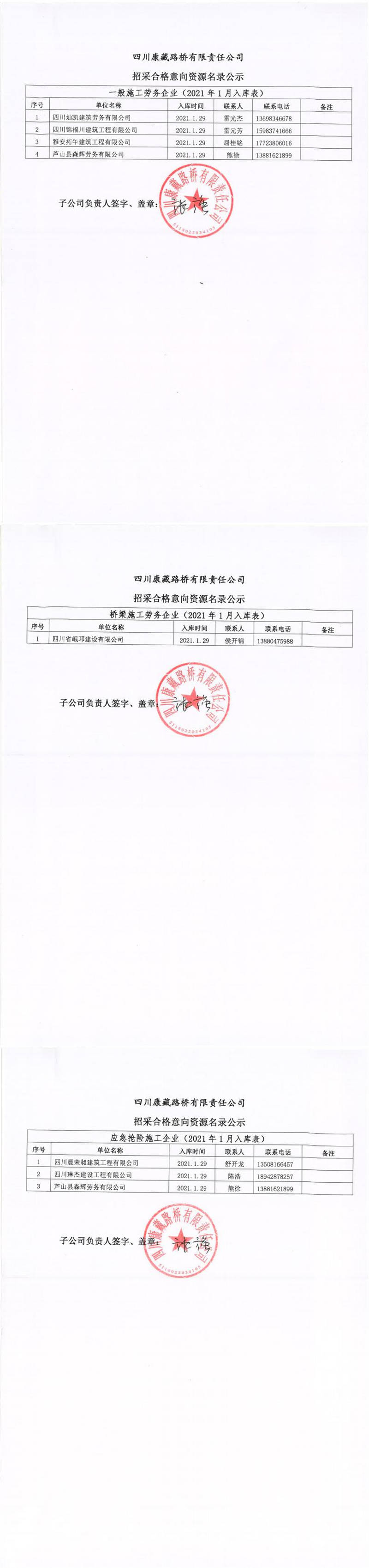 四川康藏路橋有限責任公司招采合格意向資源名錄公示