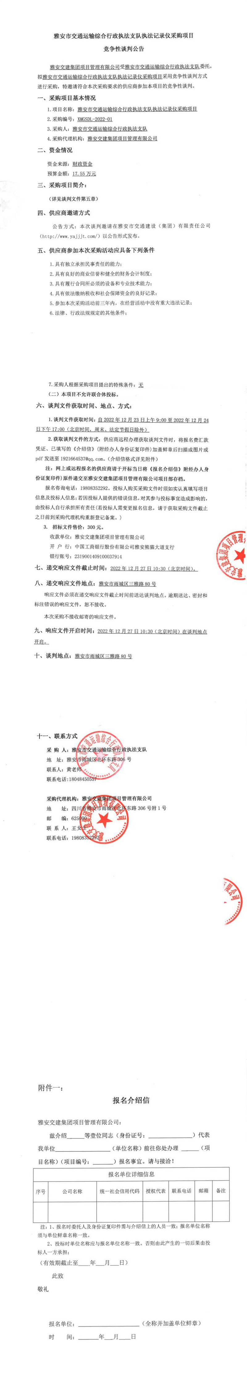 雅安交建集團(tuán)項目管理有限公司雅安市交通運(yùn)輸綜合行政執(zhí)法支隊執(zhí)法記錄儀采購項目競爭性談判公告