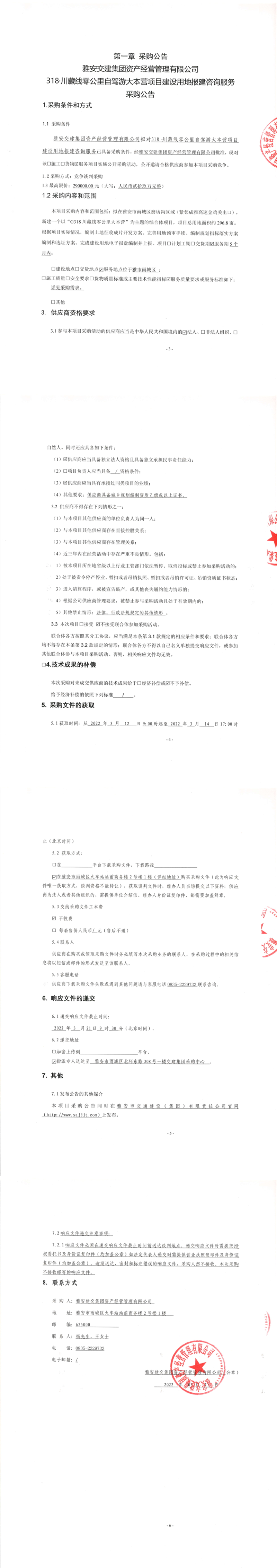 雅安交建集團(tuán)資產(chǎn)經(jīng)營(yíng)管理有限公司318.川藏線零公里自駕游大本營(yíng)項(xiàng)目建設(shè)用地報(bào)建咨詢服務(wù)采購公告