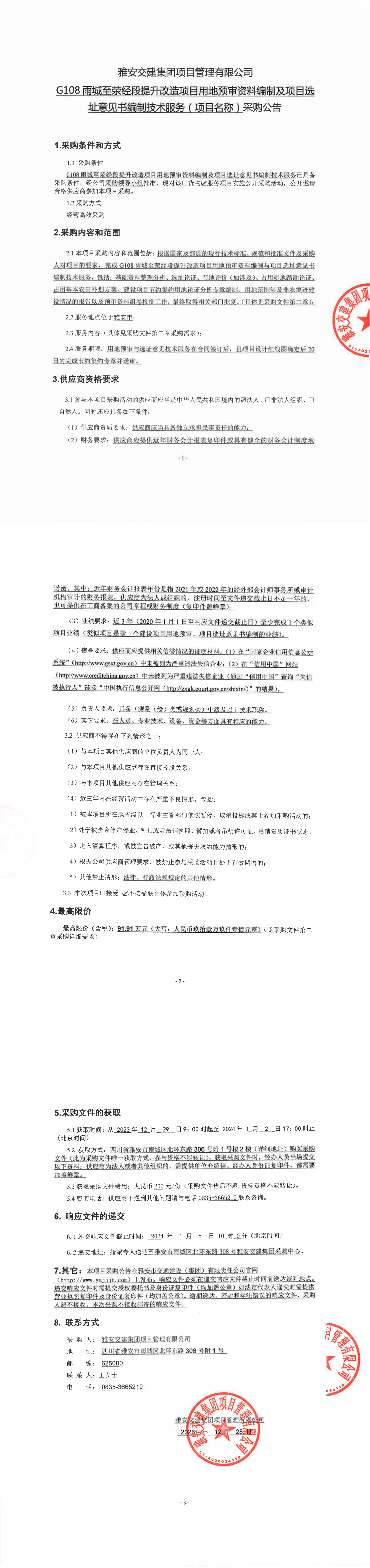 雅安交建集團(tuán)項(xiàng)目管理有限公司G108雨城至滎經(jīng)段提升改造項(xiàng)目用地預(yù)審資料編制及項(xiàng)目選址意見(jiàn)書(shū)編制技術(shù)服務(wù)(項(xiàng)目名稱(chēng))采購(gòu)公告