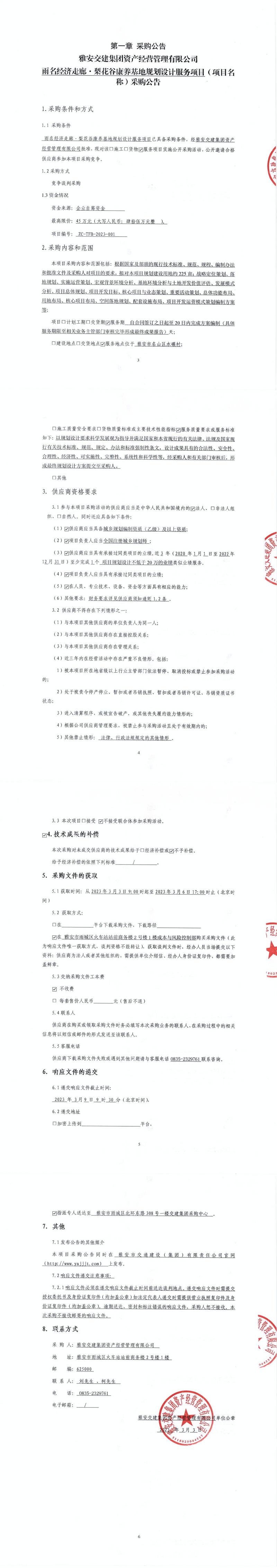雅安交建集團資產(chǎn)經(jīng)營管理有限公司雨名經(jīng)濟走廊·梨花谷康養(yǎng)基地規(guī)劃設(shè)計服務(wù)項目(項目名稱)采購公告