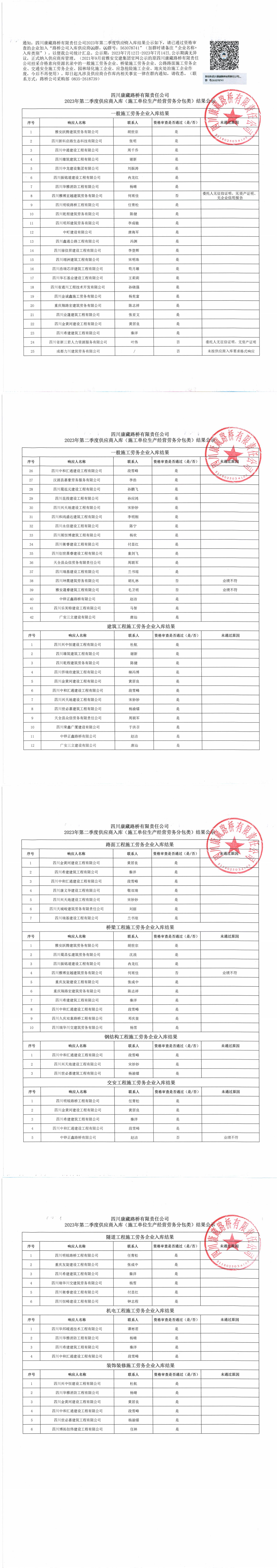 四川康藏路橋有限責任公司2023年第二季度供應(yīng)商入庫(施工單位生產(chǎn)經(jīng)營勞務(wù)分包類)結(jié)果公示