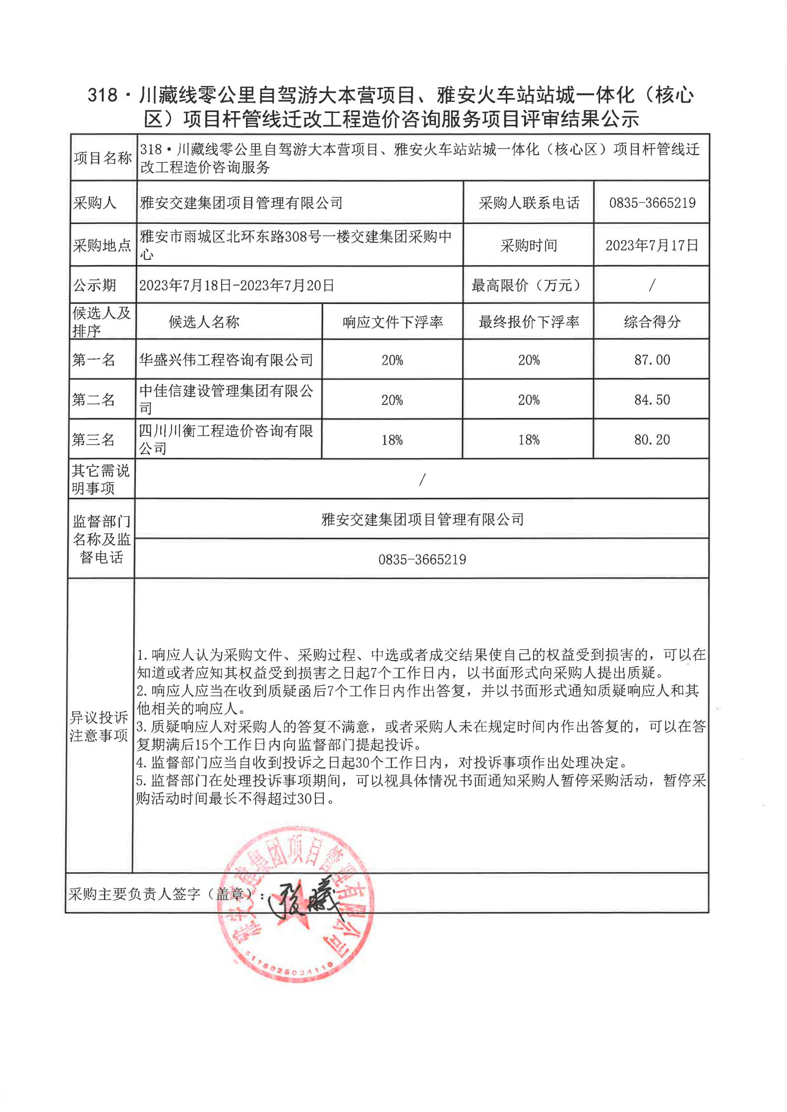 雅安交建集團(tuán)項(xiàng)目管理有限公司318·川藏公路零公里自駕游大本營(yíng)項(xiàng)目、雅安火車(chē)站站城一體化(核心區(qū))項(xiàng)目桿管線遷改工程造價(jià)咨詢服務(wù)項(xiàng)目評(píng)審結(jié)果公示
