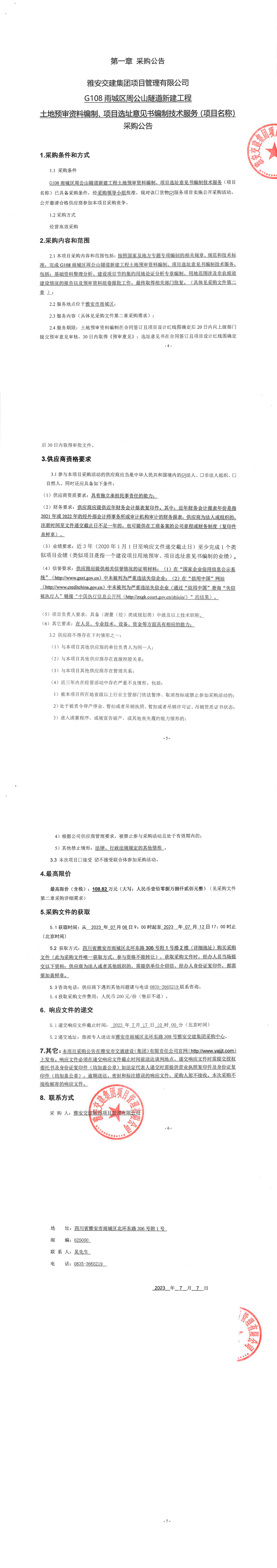 雅安交建集團(tuán)項(xiàng)目管理有限公司G108雨城區(qū)周公山隧道新建工程土地預(yù)審資料編制、項(xiàng)目選址意見書編制技術(shù)服務(wù)(項(xiàng)目名稱)采購(gòu)公告