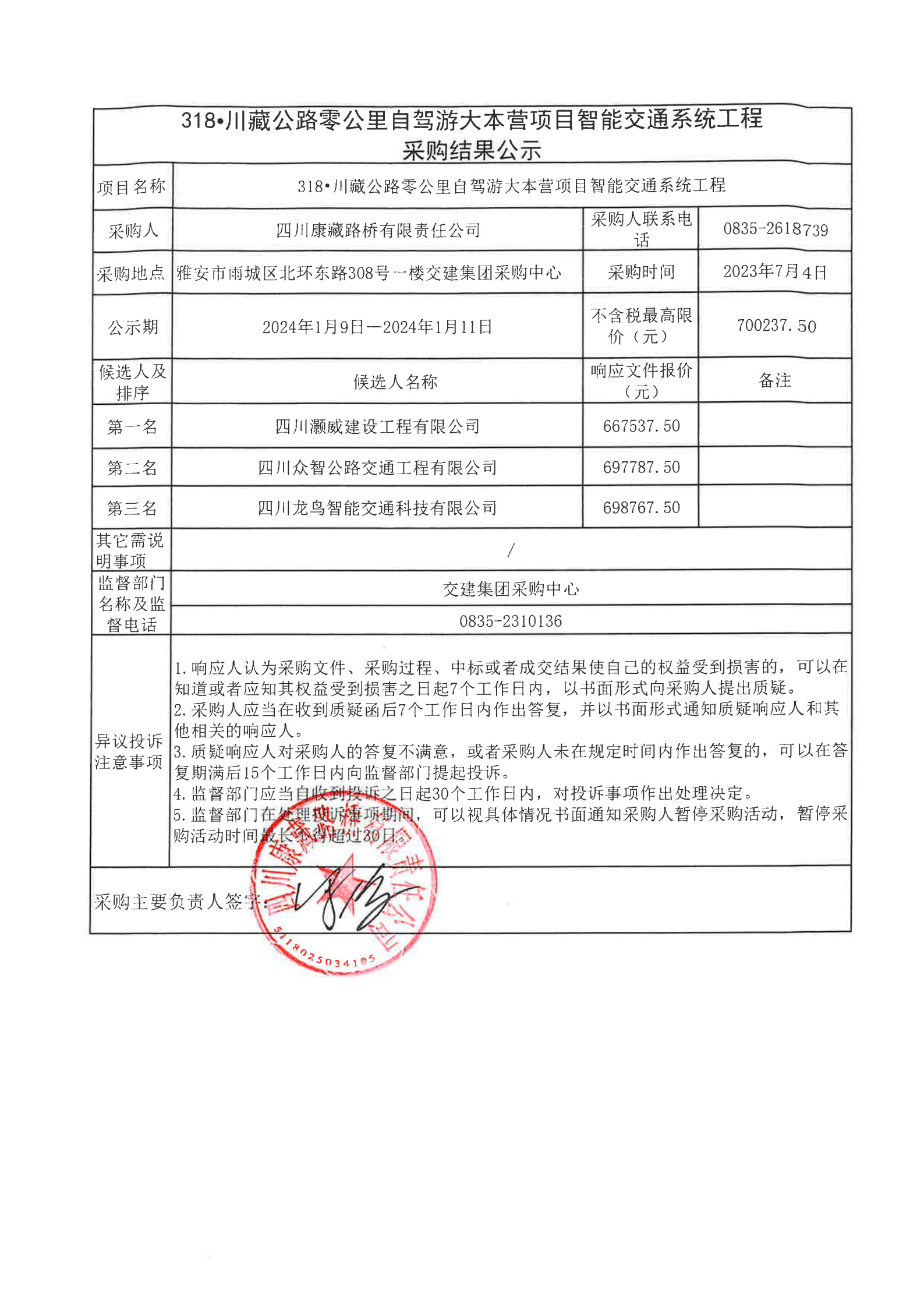 四川康藏路橋有限責(zé)任公司318·川藏公路零公里自駕游大本營項目智能交通系統(tǒng)工程采購結(jié)果公示