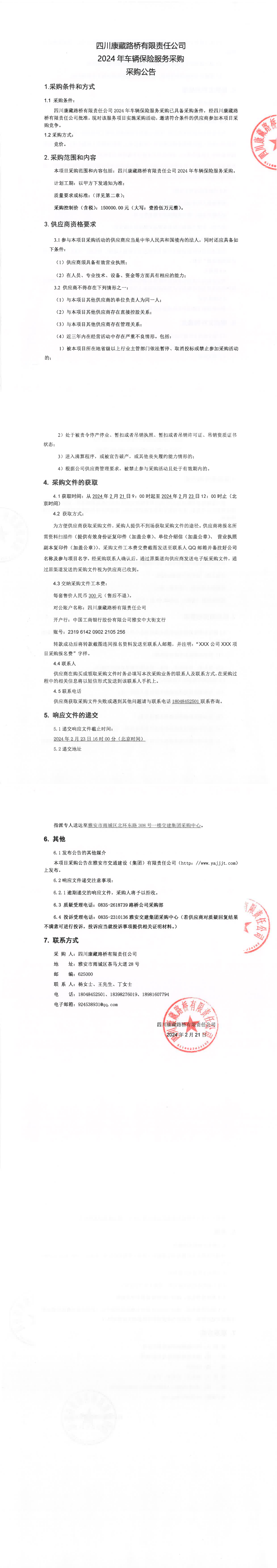 四川康藏路橋有限責(zé)任公司2024年車(chē)輛保險(xiǎn)服務(wù)采購(gòu)公告