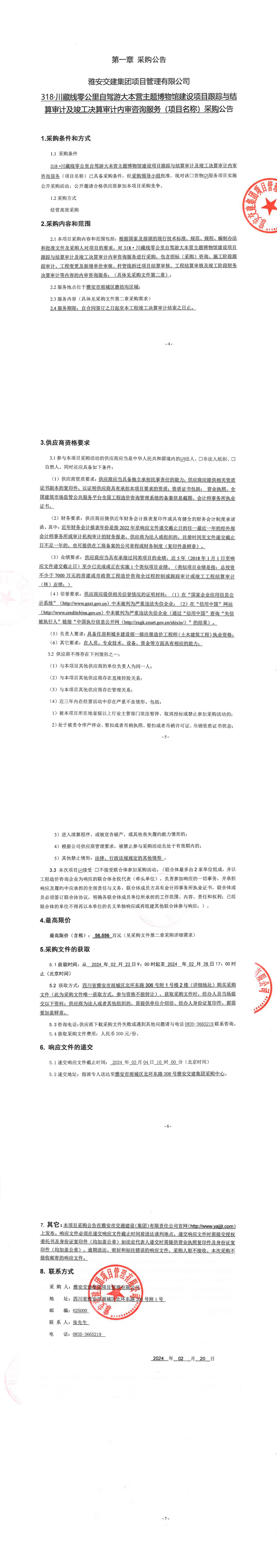 雅安交建集團項目管理有限公司318·川藏線零公里自駕游大本營主題博物館建設項目跟蹤與結(jié)算審計及竣工決算審計內(nèi)審咨詢服務采購公告