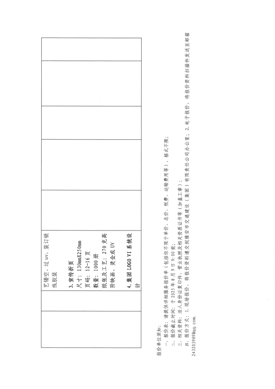 關(guān)于采購集團(tuán)品牌形象宣傳服務(wù)單位的詢價(jià)函