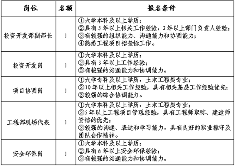 雅安交建集團資產經營管理有限公司是雅安市重點國有企業(yè)雅安市交建集團下屬子公司,主要從事企業(yè)資產經營管理;項目投資;土地整理等業(yè)務。根據公司發(fā)展需要,決定面向社會公開招聘5名工作人員,現將有關事項公告如下: