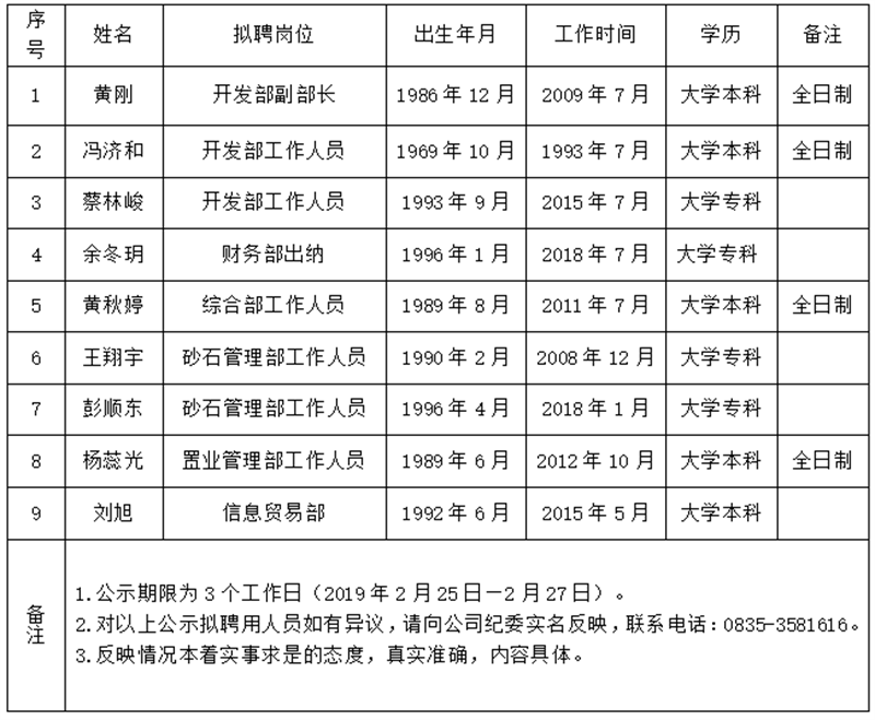 雅安交建集團運通貿易有限公司擬聘用人員公示