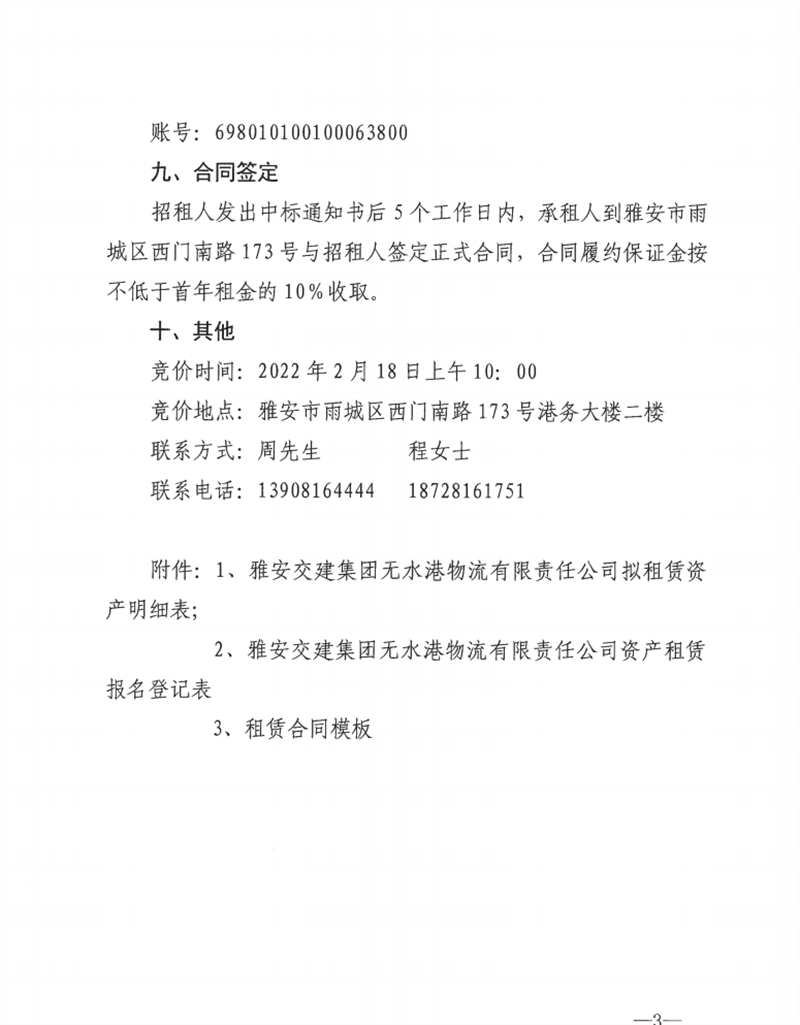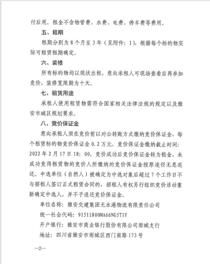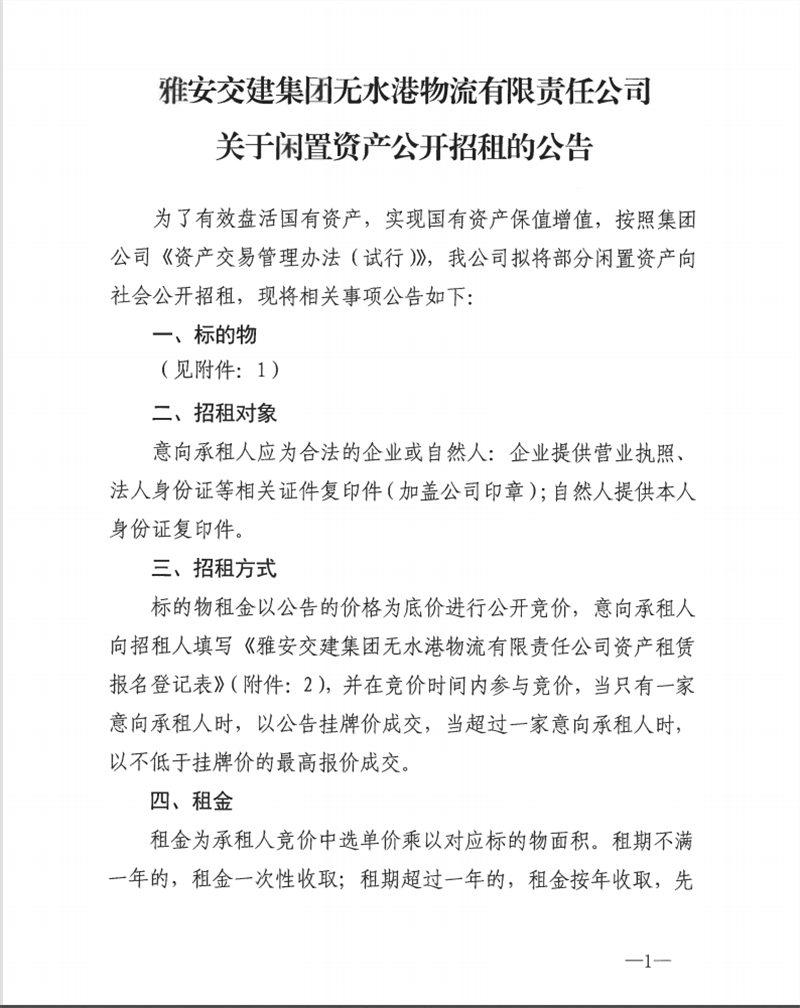 無(wú)水港公司關(guān)于閑置資產(chǎn)公開招租的公告