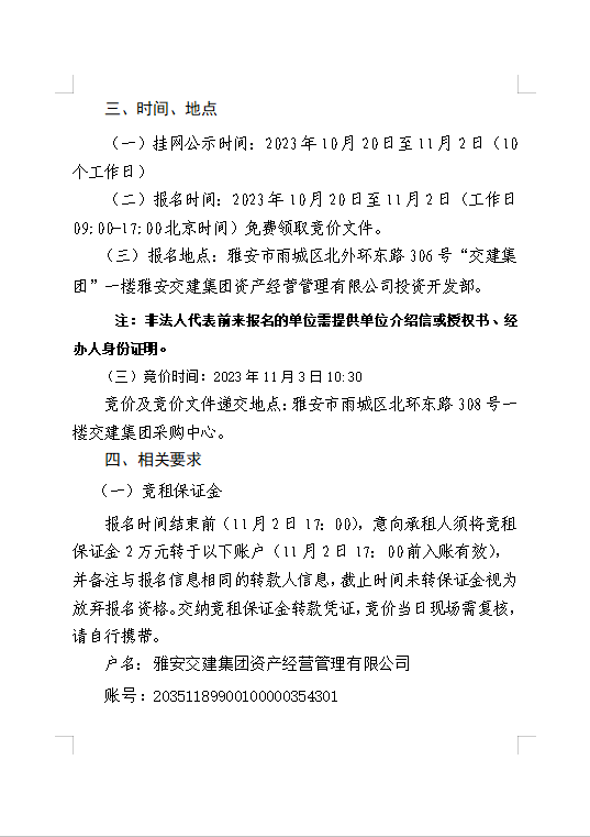雅安交建集團(tuán)資產(chǎn)經(jīng)營(yíng)管理有限公司 雨名快速通道(名山服務(wù)區(qū))3號(hào)樓商鋪招租公告