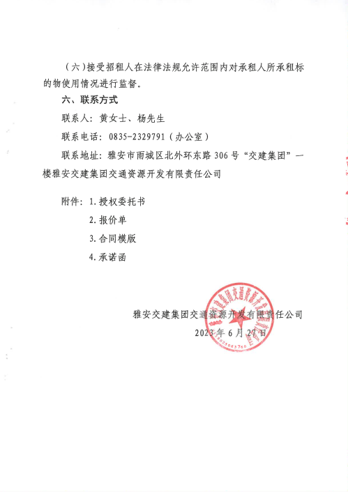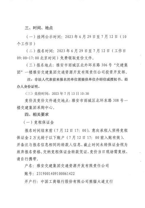 雅安交建集團(tuán)交通資源開發(fā)有限責(zé)任公司雨名快速通道名山服務(wù)區(qū)1號(hào)樓招租公告附件