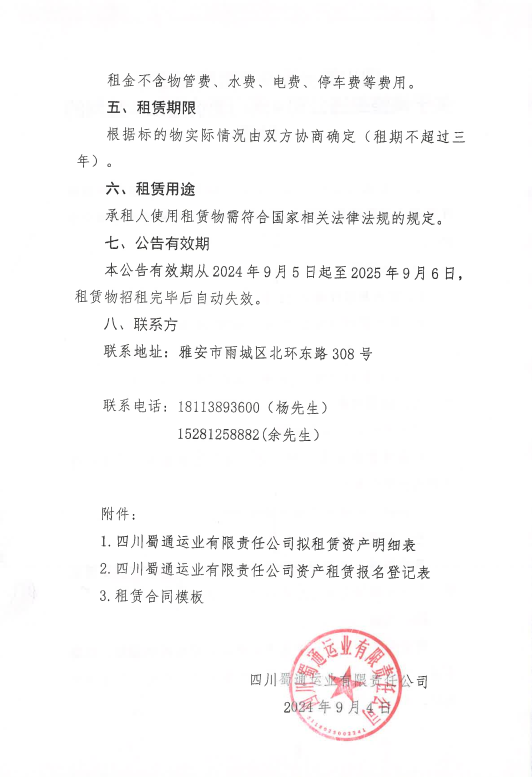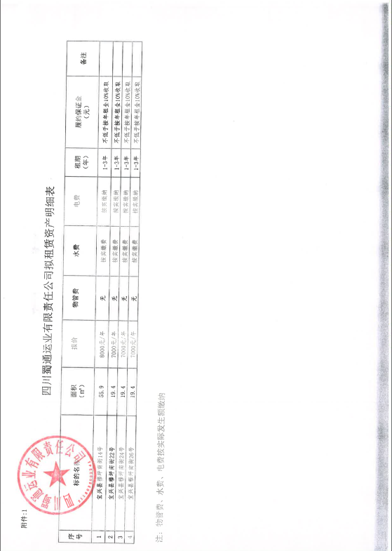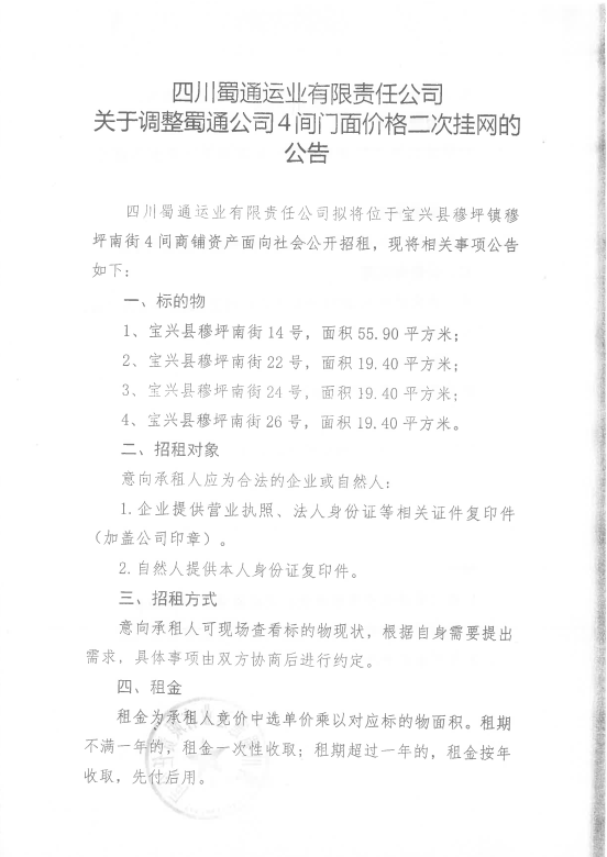 四川蜀通運業(yè)有限責任公司關于調整蜀通公司4間門面價格二次掛網(wǎng)的公告附件