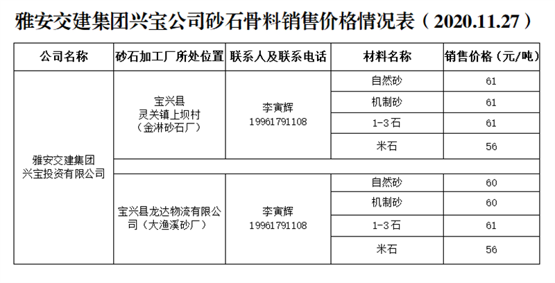 ÑŰ²½»½¨¼¯ˆF(tu¨¢n)ÅdŒš¹«Ë¾É°Ê¯¹ÇÁÏäN(xi¨¡o)ÊÛƒr(ji¨¤)¸ñÇé›r±í£¨2020.11.27£©
