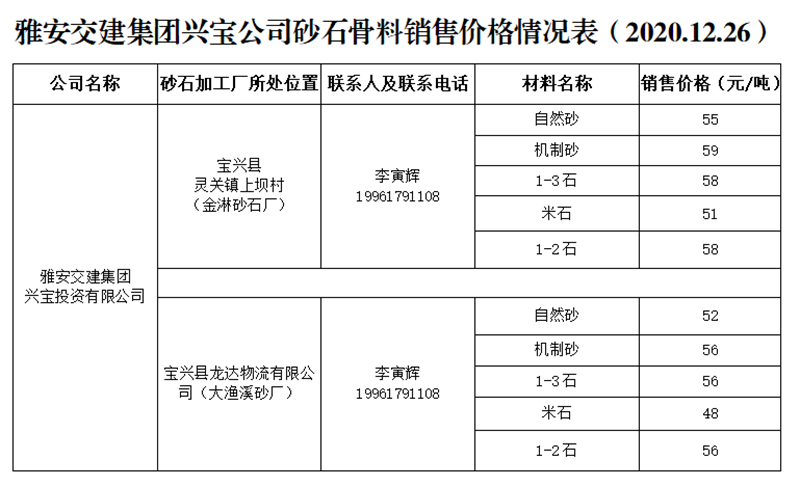 ÑŰ²½»½¨¼¯ˆF(tu¨¢n)ÅdŒš¹«Ë¾É°Ê¯¹ÇÁÏäNÊÛƒr¸ñÇé›r±í£¨2020.12.26£©