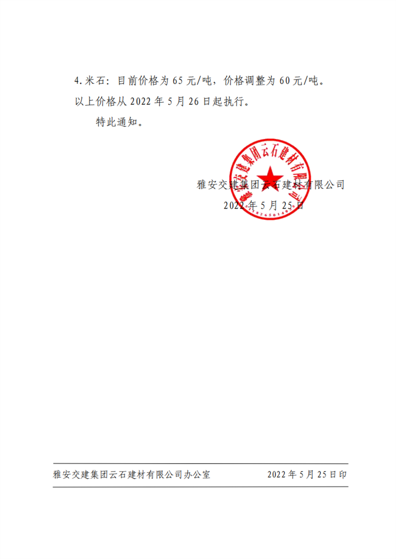 ÑŰ²½»½¨¼¯ˆFÔÆÊ¯½¨²ÄÓÐÏÞ¹«Ë¾ êPÓÚÕ{(di¨¤o)Õû³ÉÆ·Áσr¸ñµÄ֪ͨ--2022-5-25